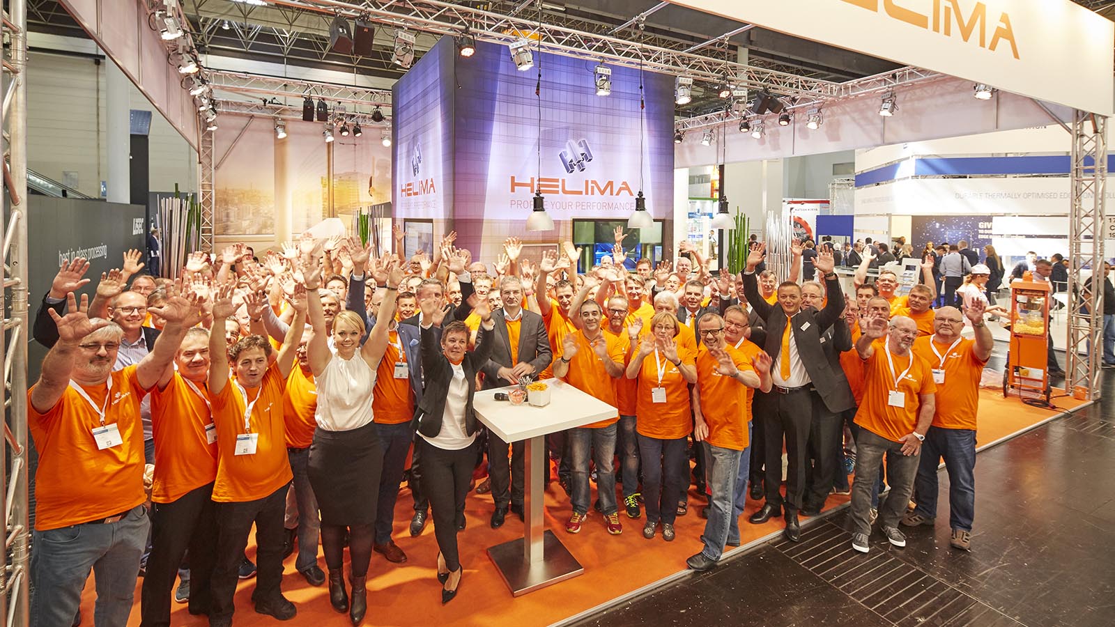 Liebevoll ausgearbeitete Details, verschiedene Gesprächsbereiche und ansprechende Produktdarstellungen in unterschiedlichen Formen sorgten dafür, dass sich Kunden wie auch neue Interessenten auf dem Stand umfassend informieren und wohlfühlen konnten. Die angenehme Atmosphäre und kleine Highlights lockten das Messepublikum an den außergewöhnlichen Stand. Spätestens nach dem Fotoshooting mit allen 150 Mitarbeitern war HELIMA das Gesprächsthema der Messe.